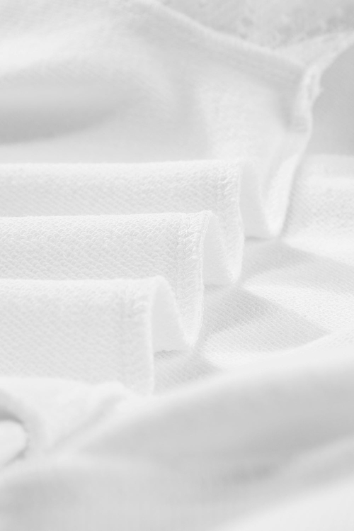To maintain the quality of your White Lace Patchwork Sleeve Drawstring Hoodie, it is recommended to machine wash it on a gentle cycle with similar colors. Avoid using bleach and tumble dry on low heat. Iron on low if necessary, but be cautious around the lace details.