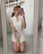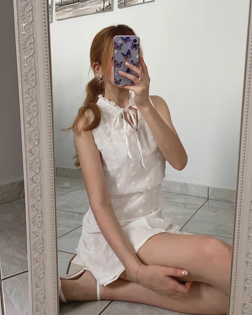 Dropship White Split Neck Pom Pom Textured Flowy Mini Dress