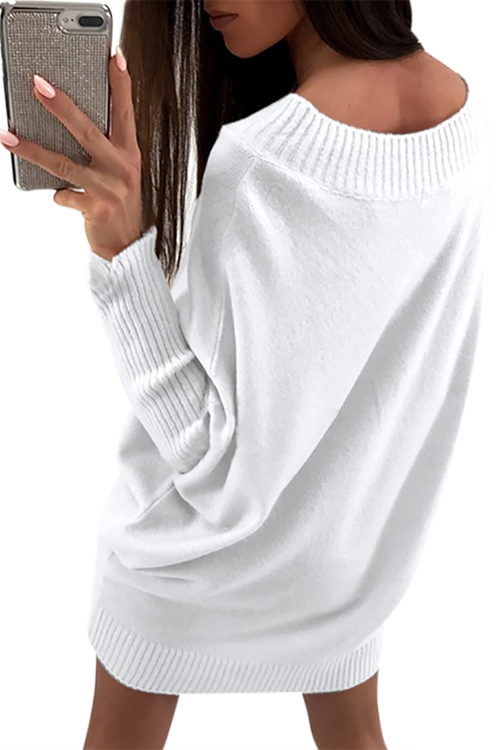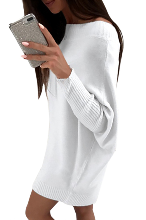 Dropship White Stylish Long Sleeve Baggy Sweater Dress