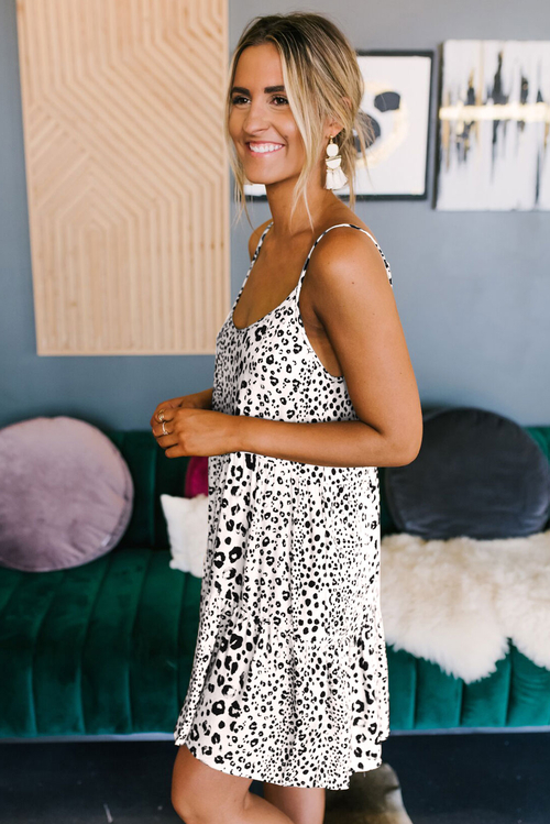 White Tiered Leopard Babydoll Dress