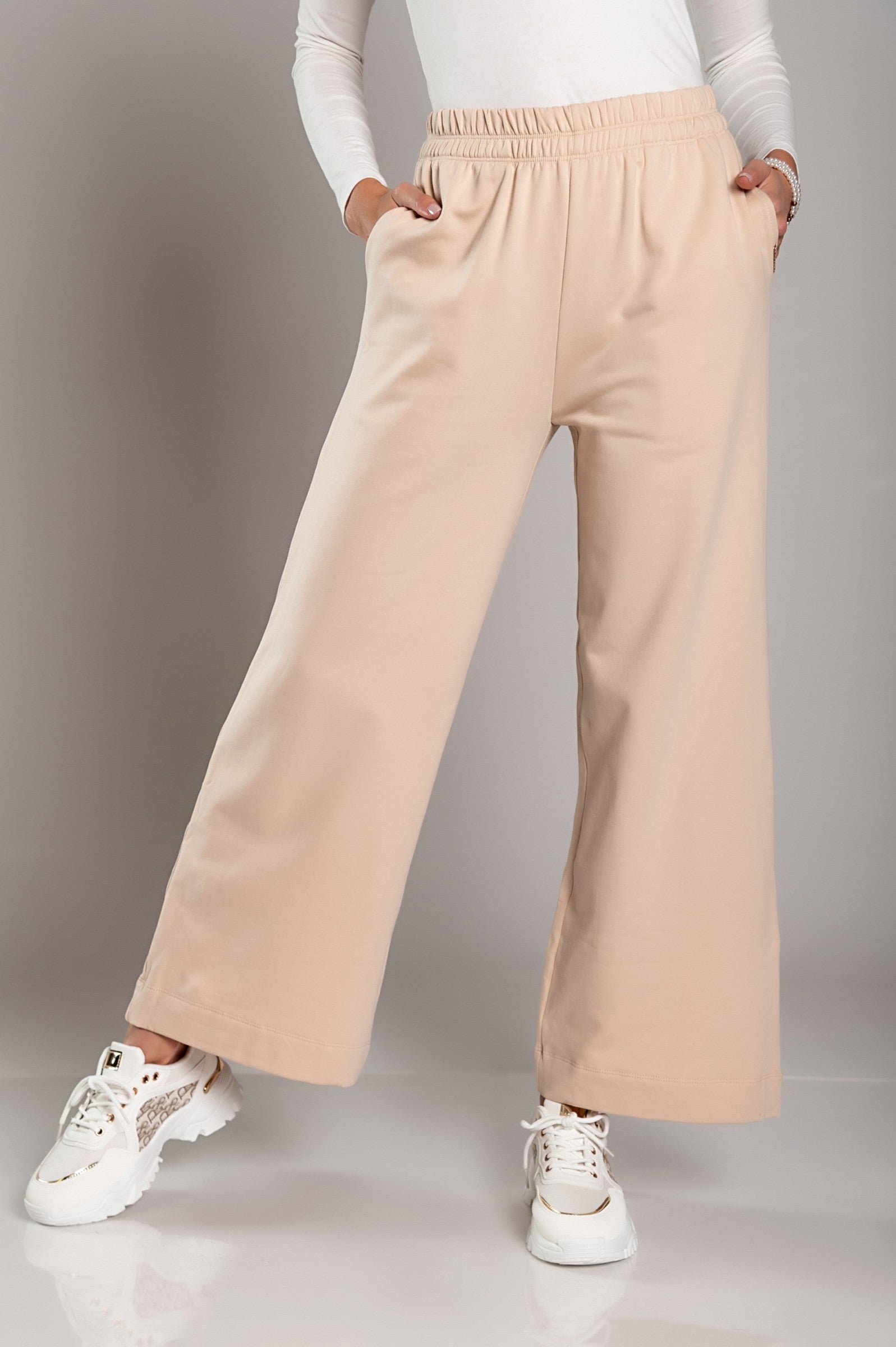 To maintain the quality and longevity of your Wide Leg Cotton Sports Trousers Sarema, it is recommended to wash them in cold water and hang them to dry. Avoid using bleach or harsh detergents to preserve the fabric's softness and color. With proper care, these trousers will remain a staple in your wardrobe for years to come.