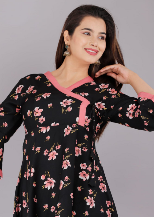 Women's crepe printed tops are stylish and versatile garments made from lightweight, crinkled fabric that offers a flattering drape. These tops feature vibrant prints and patterns, making them suitable for both casual and semi-formal occasions. Known for their comfort and elegance, crepe printed tops can be easily paired with jeans, skirts, or trousers to create chic and fashionable outfits. Available in various designs, colors, and sleeve lengths, they are a popular choice for women seeking a blend of style and ease.