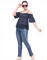 Name : Women Checked Off Shoulder Navy Blue Top