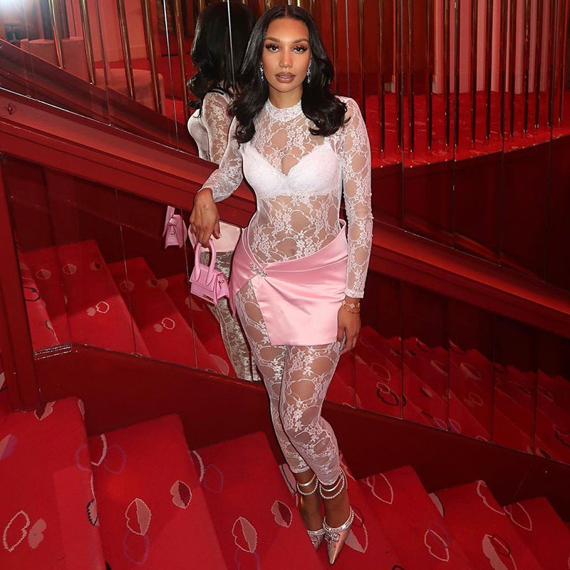 In summary, our Women Clothing Autumn Winter Lace See-through Mesh Sexy Long Sleeve top is a must-have addition to your wardrobe. With its stylish design, flattering fit, and quality fabric, it is perfect for any fashion-forward woman looking to elevate her autumn and winter style.