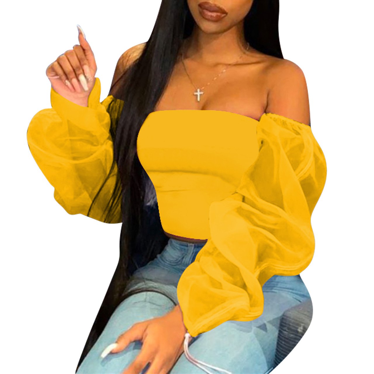 This top is available in a range of sizes to accommodate different body types. It is designed to provide a comfortable fit without being too tight or too loose. For the best fit, refer to our size chart before making your purchase. The long sleeves and sheer fabric allow for easy layering, making it a great option for transitional weather.