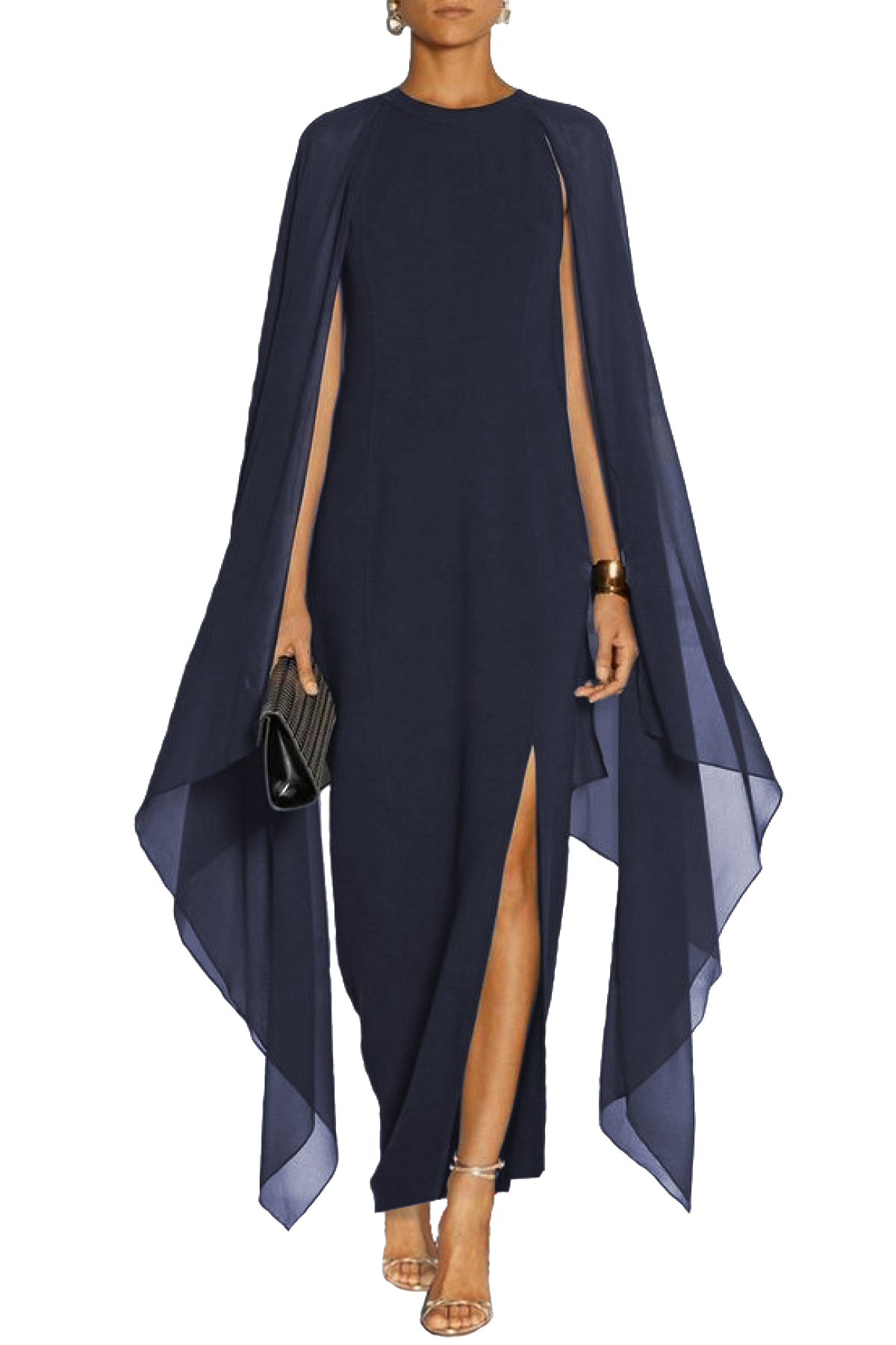 This elegant dress is versatile enough to be worn for various occasions. Pair it with heels for a formal event, or dress it down with flats for a casual outing. The dark blue color is timeless and can be accessorized in numerous ways, making it a staple piece in your wardrobe.