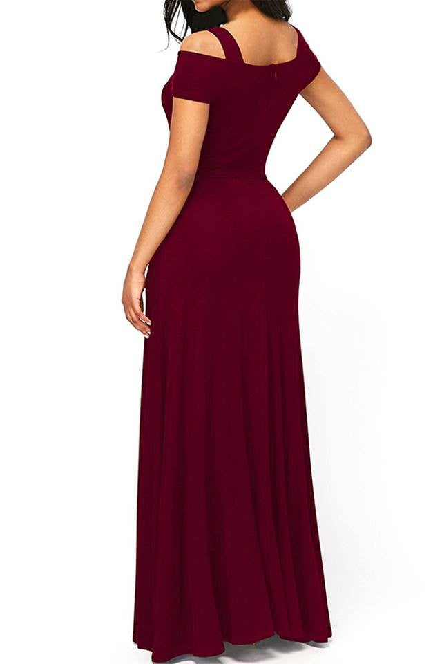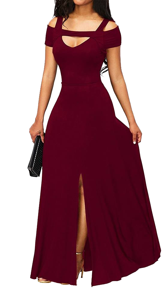 This dress features a beautiful cleavage design that adds a touch of sophistication and allure. The short sleeves and open shoulder style create a modern and chic look, making it suitable for various occasions. The side cutout adds an unexpected twist, enhancing the overall aesthetic of the dress while providing a flattering silhouette.