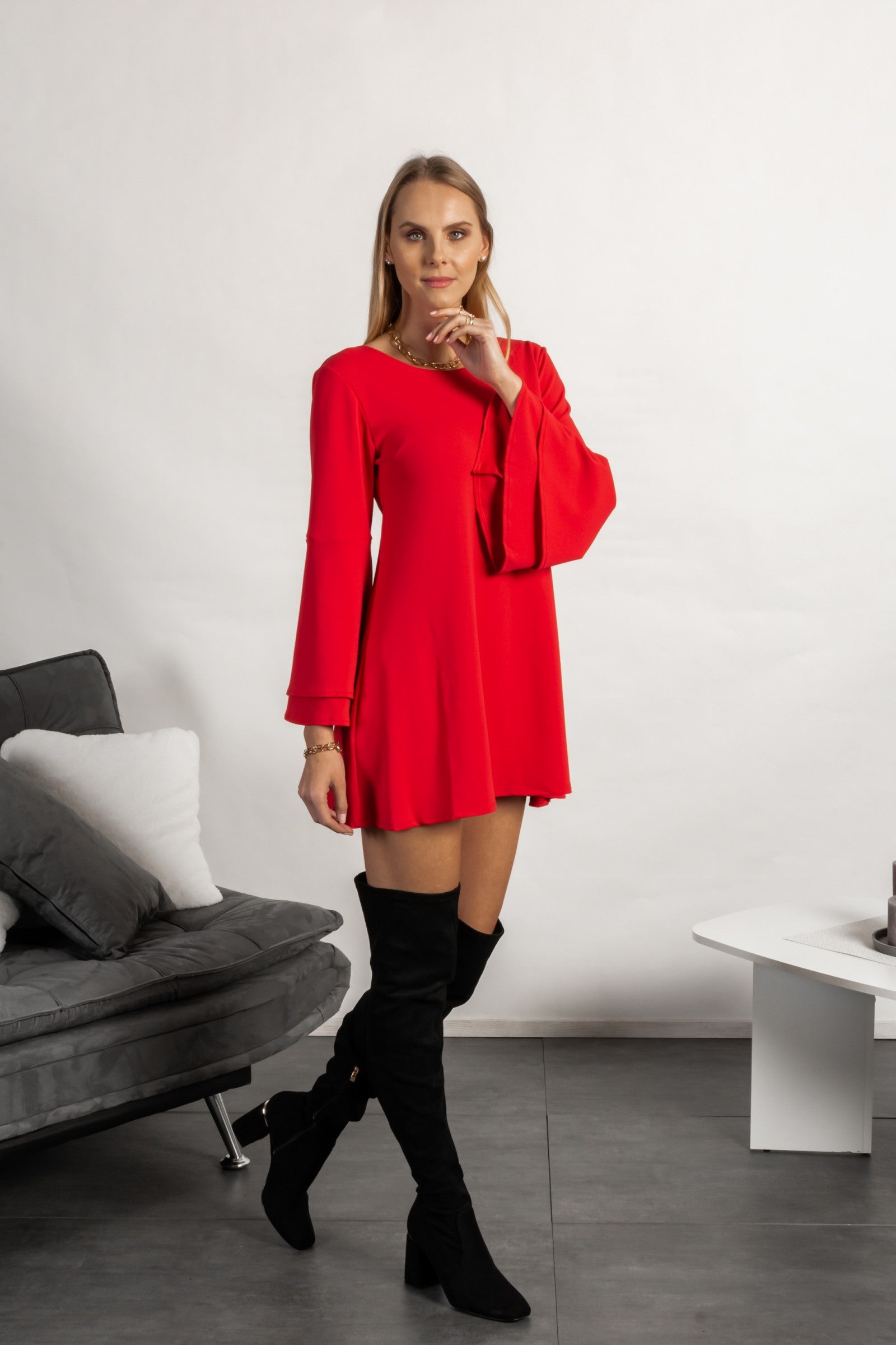 With a length that falls at the middle thigh, the WOMEN DRESS RANIA strikes the perfect balance between modesty and allure. It's ideal for showcasing your favorite footwear, whether it's heels or stylish flats. Plus, caring for this dress is a breeze; it is machine washable, making it easy to maintain its vibrant red color and elegant shape.