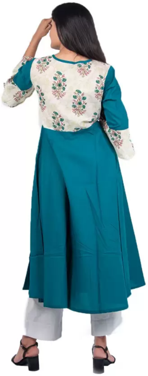 Dropship Women Embroidered Pure Cotton Flared Kurta (Multicolor) Size XXL
