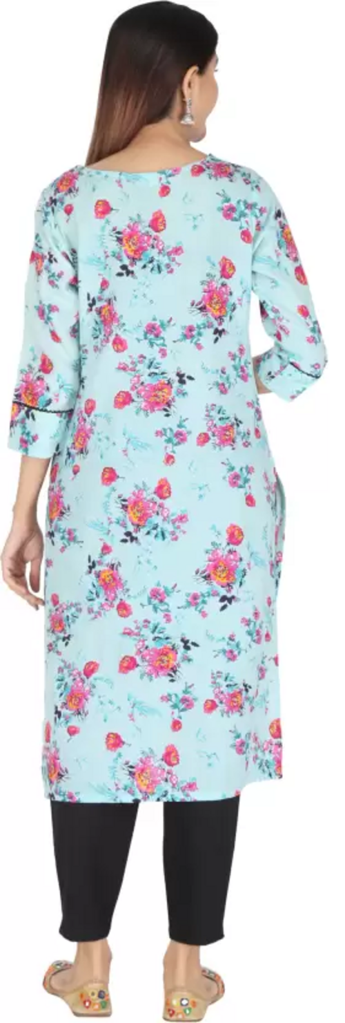 Dropship Women Floral Print Viscose Rayon Straight Kurta (Light Blue) Size L