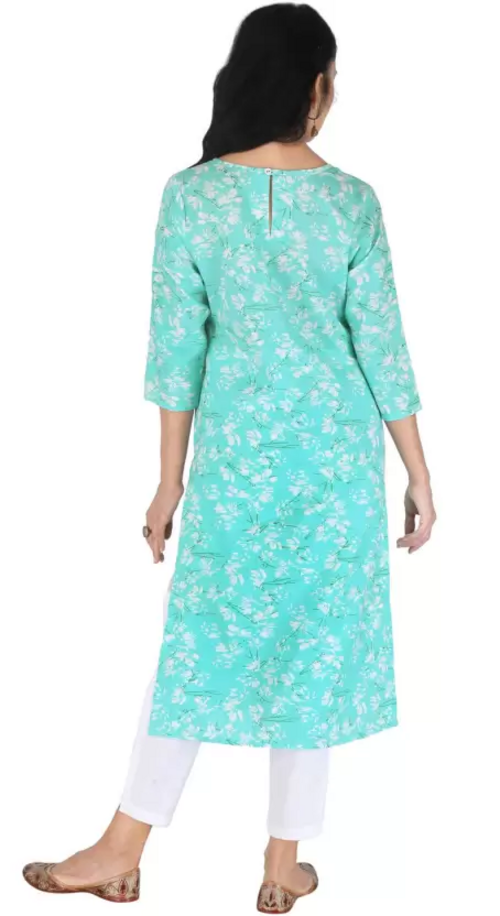 Dropship Women Floral Print Viscose Rayon Straight Kurta (Light Blue) Size XL