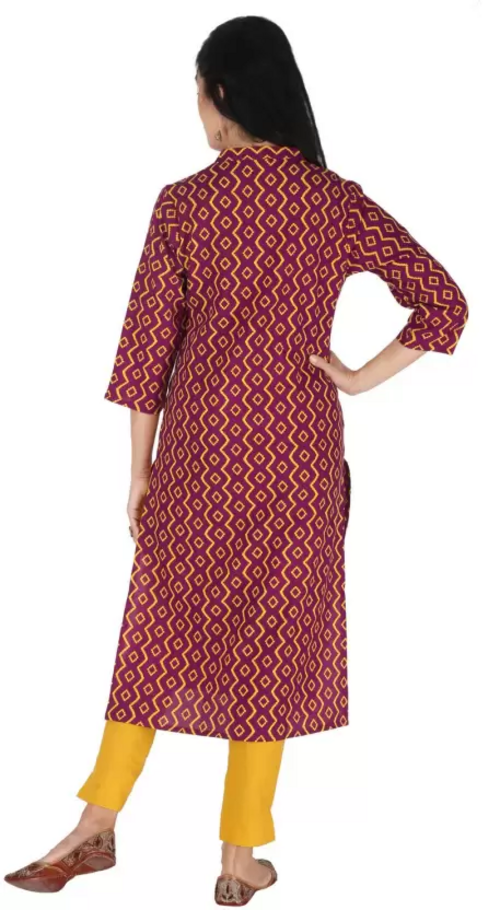 Dropship Women Geometric Print Viscose Rayon Straight Kurta (Purple) Size M
