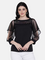 Elevate your look with this women’s lace-detailed regular fit boat neck top in black, adding a touch of sophistication to your wardrobe.