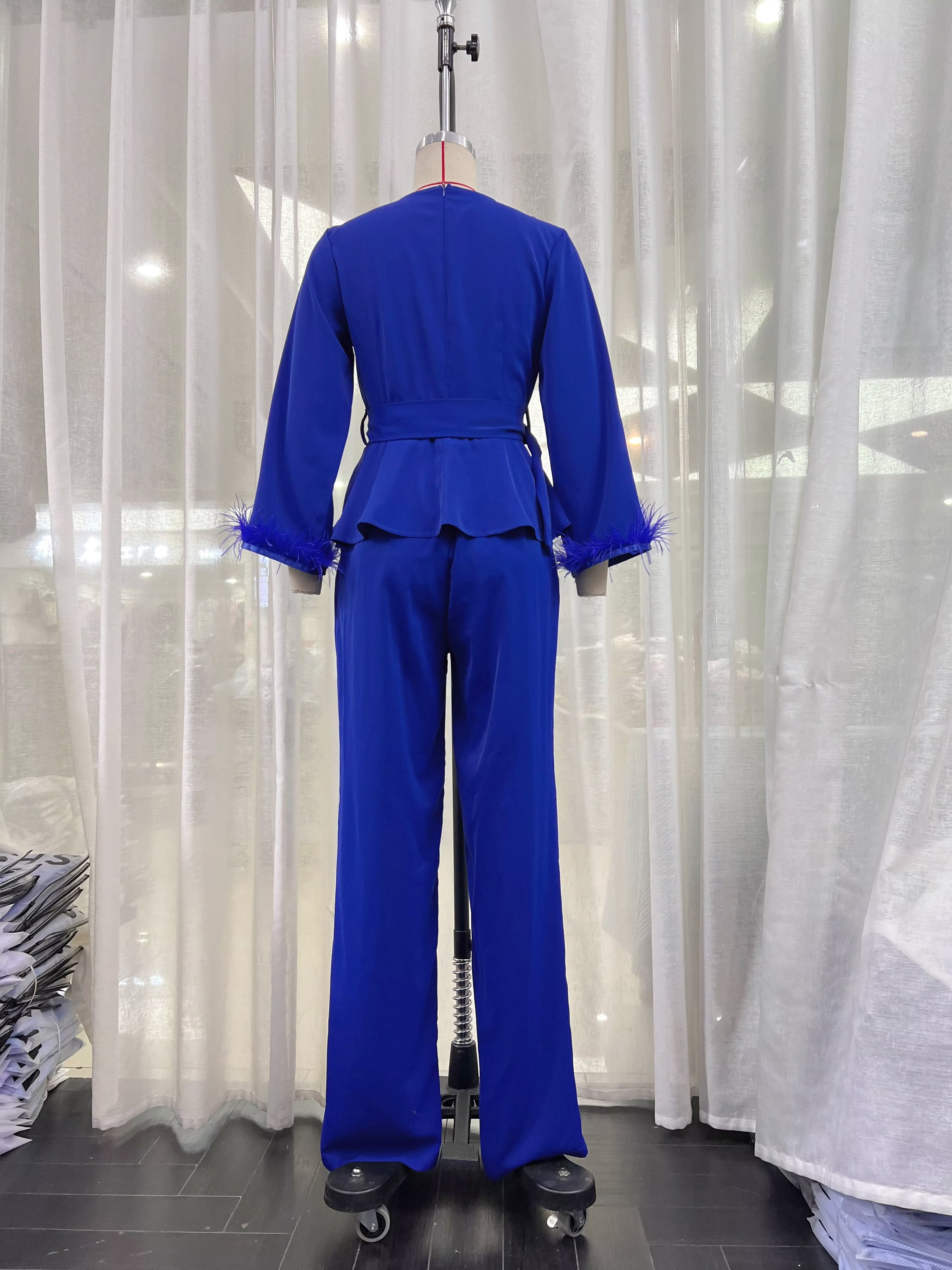 Dropship Women Loose Elegant V neck Long Sleeve Shirt High Waist Pocket Wide