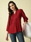 Women Mandarin Neck Rayon Top (Color Maroon) (Size L)