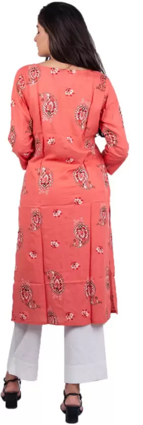 Dropship Women Paisley Viscose Rayon A-line Kurta (Pink) Size XL