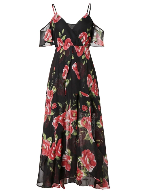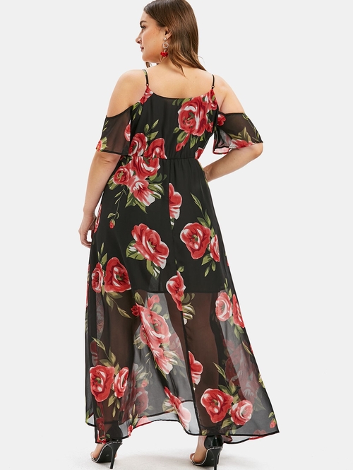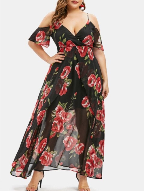 Model Number: 20190427 Plus Size Cold Shoulder Maxi Floral Dress