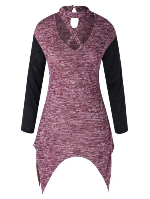 Model Number: 20190124 Plus Size Criss Cross High Low Hem T-shirt