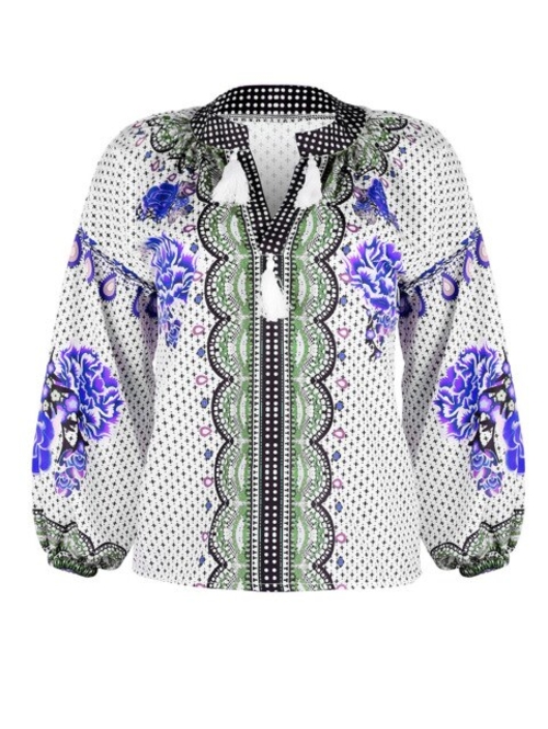 Model Number: 20190717 Plus Size Printed Loose Puff Sleeve Shirt