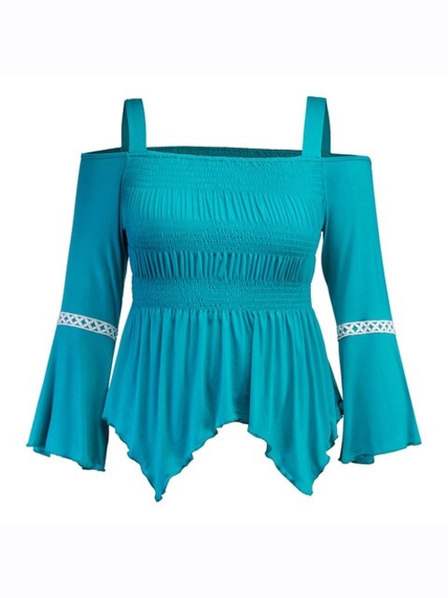 Model Number: 20190614 Plus size Off Shoulder Bell Sleeve irregular hem Top