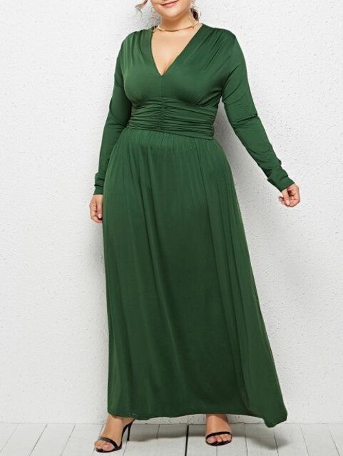 Model Number: 20190116 Plus Size Plunge Empire Waist Maxi Dress