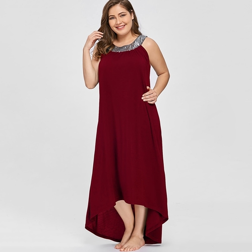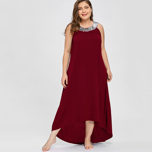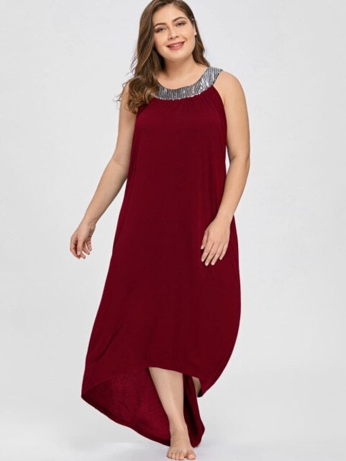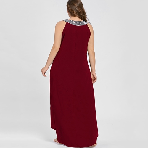 Model Number: 20190515 Plus Size Sequined Collar Asymmetric Dress