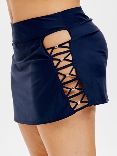 Gender: Women Material: Spandex Material: Nylon Style: Casual Pattern Type: Solid Silhouette: Pencil Decoration: NONE Dresses Length: Above Knee, Mini Waistline: empire Model Number: 20190119 Side Criss Cross Plus Size Skirted Briefs