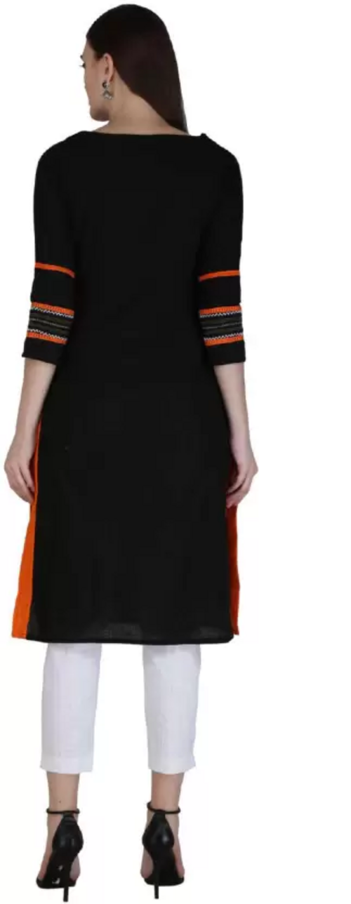 Dropship Women Printed Cotton Blend Straight Kurta (Black) Size XL