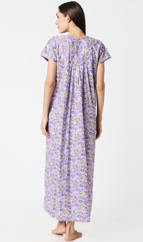 Dropship Women Printed Maternity Nursing Nighty Purple & Green(Size S)