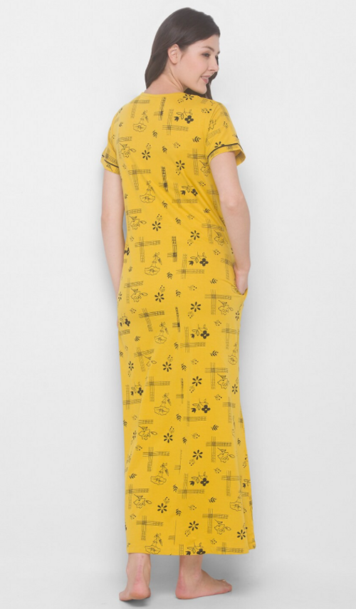 Women Printed Pure Cotton Maxi Nightdress Yellow(Size XL)