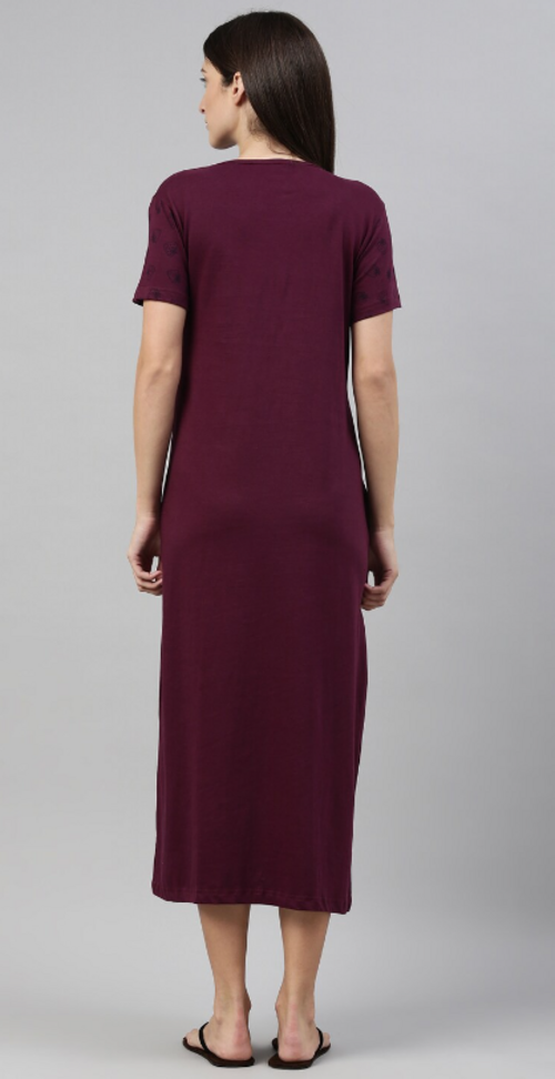 Women Printed Pure Cotton Nightdress Wine(Size S)