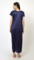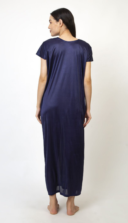 Women Round Neck Short Sleeves Satin Maxi Nighty Navy Blue(Size XL)