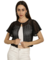 The open-front design allows for effortless layering over dresses, tops, or blouses, making it a versatile accessory for various occasions. Whether you’re dressing up for a special event or adding a stylish touch to your everyday look, the Women’s Self Design Net Regular Shrug is a chic and refined choice that enhances your outfit with its delicate charm.