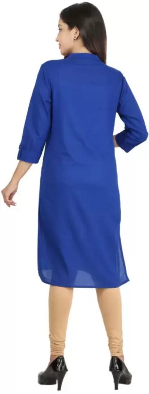 Dropship Women Solid Cotton Silk Straight Kurta (Dark Blue) Size L