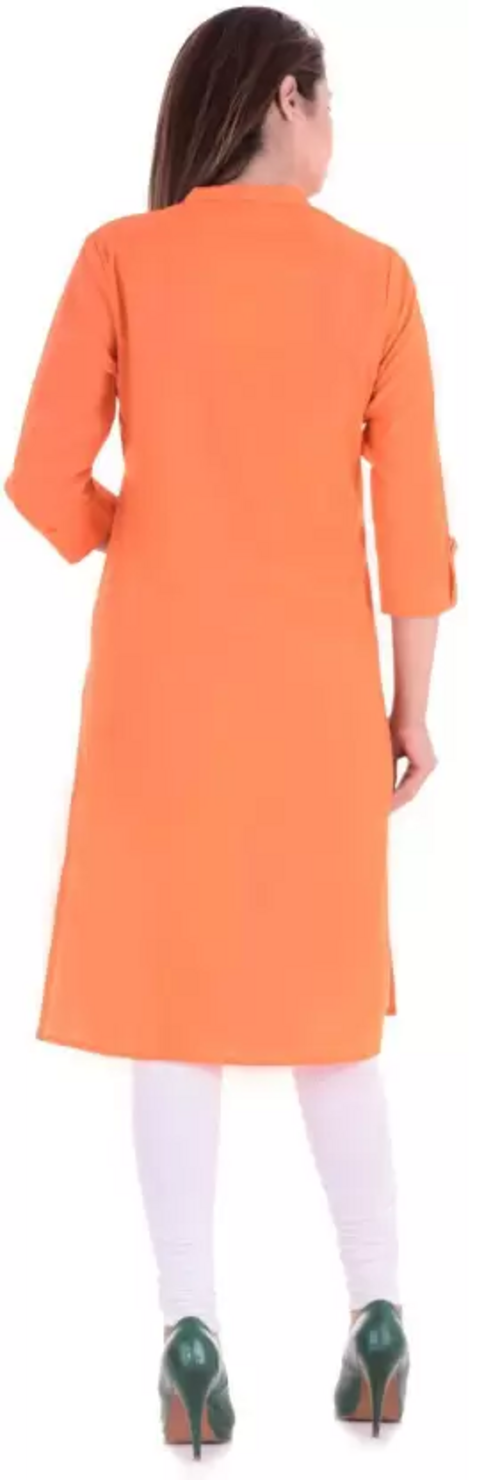 Women Solid Cotton Silk Straight Kurta  (Orange) Size XL