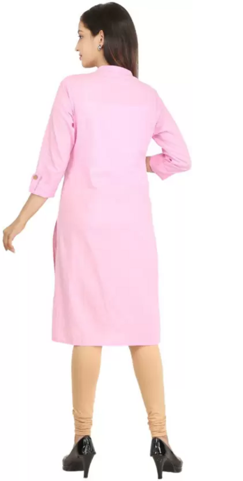 Dropship Women Solid Cotton Silk Straight Kurta (Pink) Size M