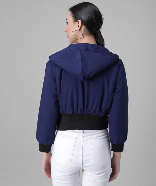 Women Solid Light Weight Casual Short Jacket (Color Dark Blue) (Size