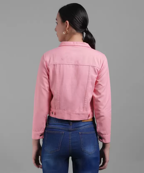 Women Solid Light Weight Casual Short Jacket (Color Light Pink) (Size