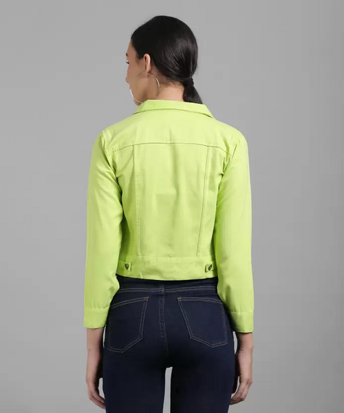Women Solid Light Weight Casual Short Jacket (Color Neon Green) (Size
