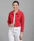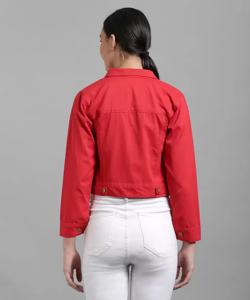 Women Solid Light Weight Casual Short Jacket (Color Red) (Size M)