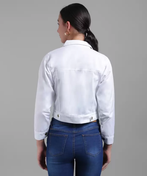 Women Solid Light Weight Casual Short Jacket (Color White) (Size XL)