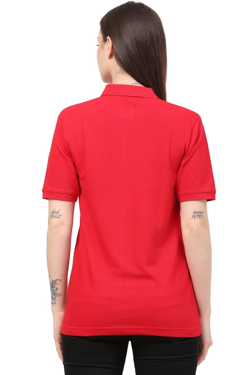 Women Solid Polo Collar T-shirt (ColorRed) (Size L)