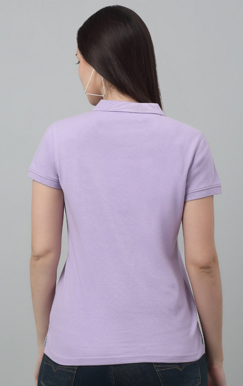 Women Solid Polo Collar T-shirt (ColorLavender) (Size M)