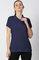 Dropship Women Solid Polo Collar T-shirt (ColorNavy Blue) (Size L)
