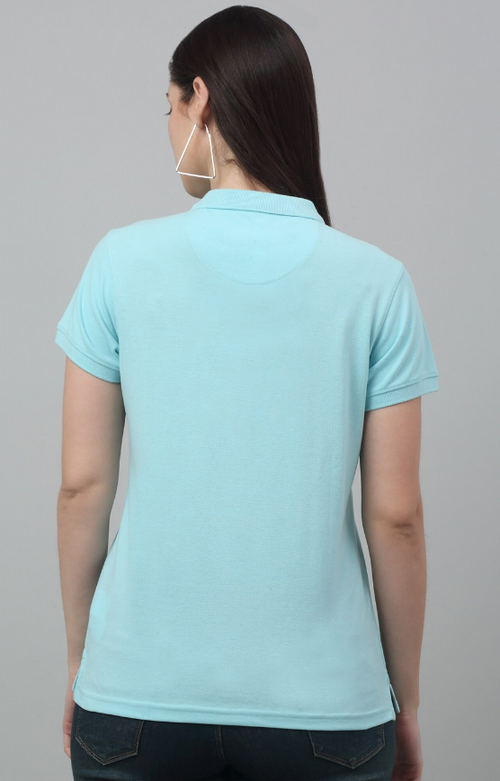 Women Solid Polo Collar T-shirt (ColorSky Blue) (Size M)
