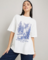 Dropship Women Typographic Print Oversized Fit Round-Neck T-Shirt (SIZE-S)