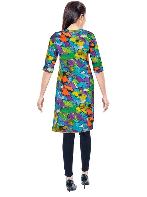 Beautifully designed, this multi coloured kurti will lend you a smart ethnic look all day long. Featuring an eye-catching print all over and a stylish neck, this knee-length kurti is surely not to be missed. Made from cotton, this regular-fit kurti will help you stay relaxed all day long.
