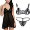 Dropship Women's Bra & Panty Set Self Design Black, Black Lingerie Set (Size
