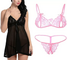 Women's Bra & Panty Set Self Design Black, Pink Lingerie Set (Size 34)