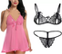 Dropship Women's Bra & Panty Set Self Design Pink, Black Lingerie Set (Size 38)